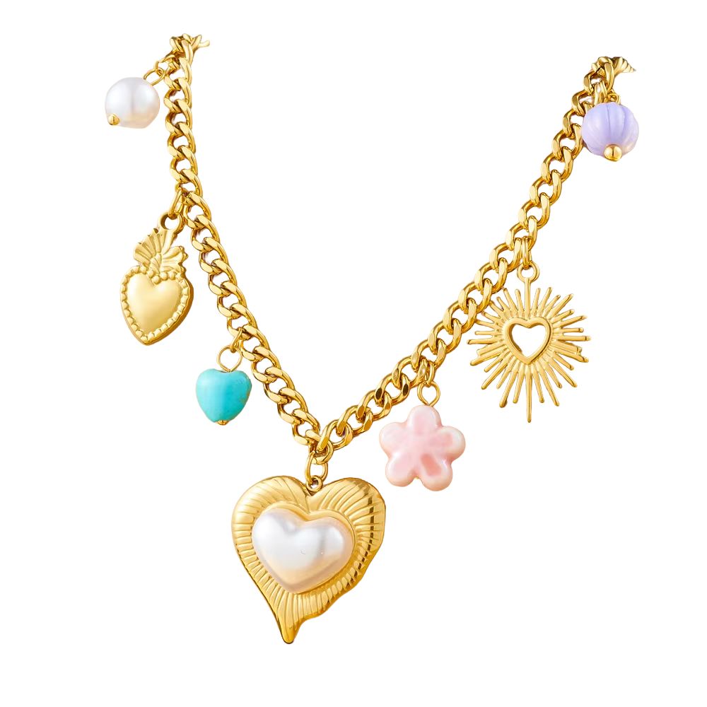 Collier à breloques avec gros coeur doré