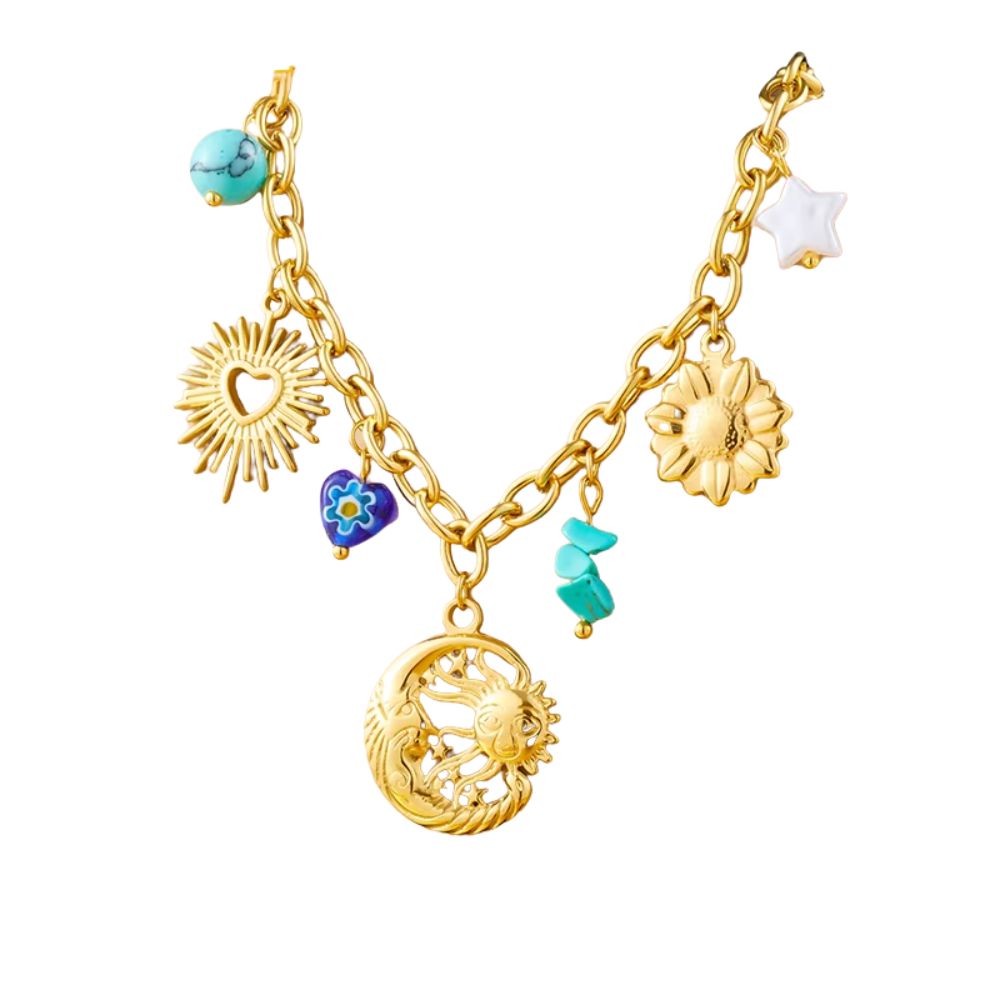 Collier à breloques avec lune et soleil doré
