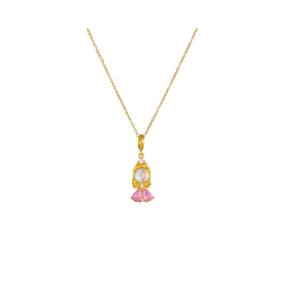 Collier breloque cristal doré et rose