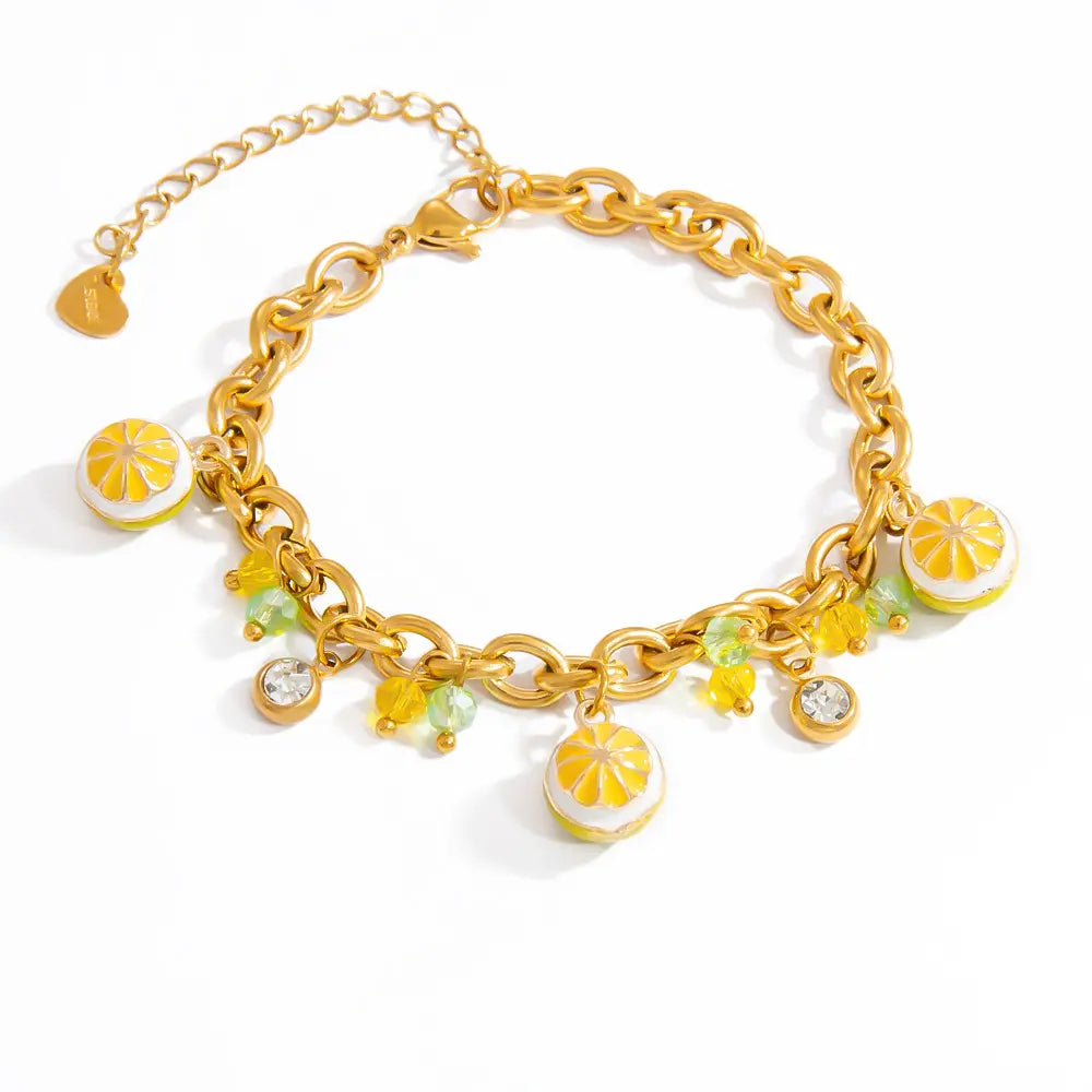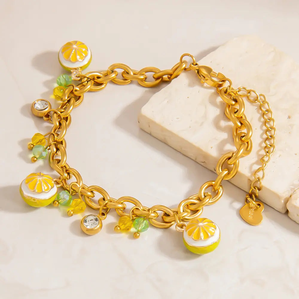 Le Bracelet breloques avec citrons meringués est bien plus qu’un simple bijou. C’est une véritable déclaration de mode qui exprime votre personnalité pétillante et votre goût pour les détails raffinés. Avec un design exclusif, il se marie parfaitement avec nos vêtements d’été ou même un pull douillet lors des soirées plus fraîches. Laissez-vous séduire par cet accessoire où l’originalité rencontre l’élégance, et faites de votre poignet le point focal de toutes les attentions.
