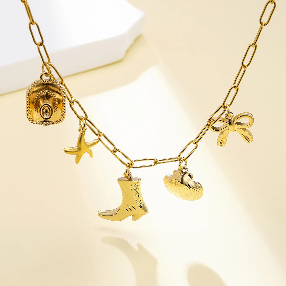 Collier doré à breloques avec botte